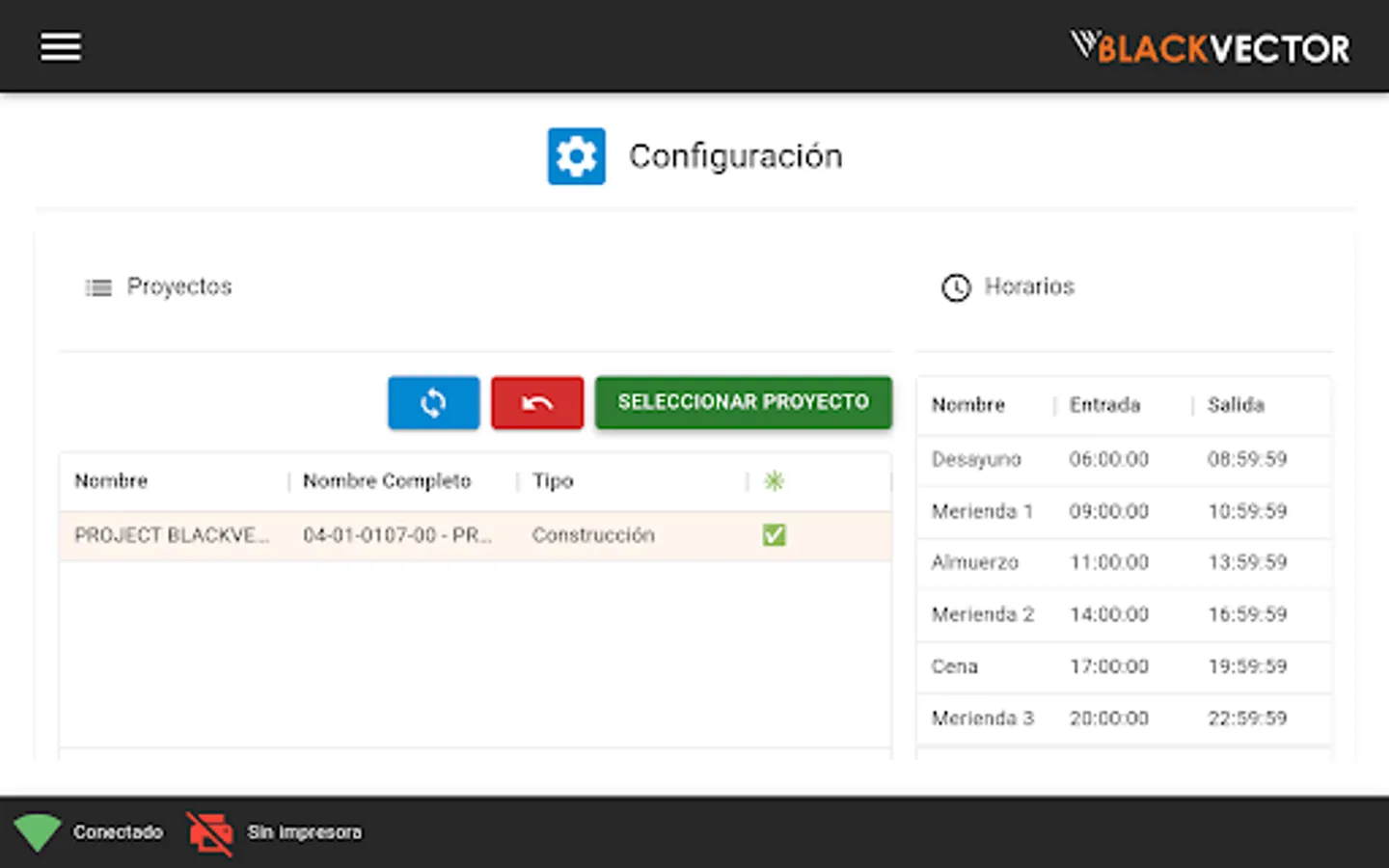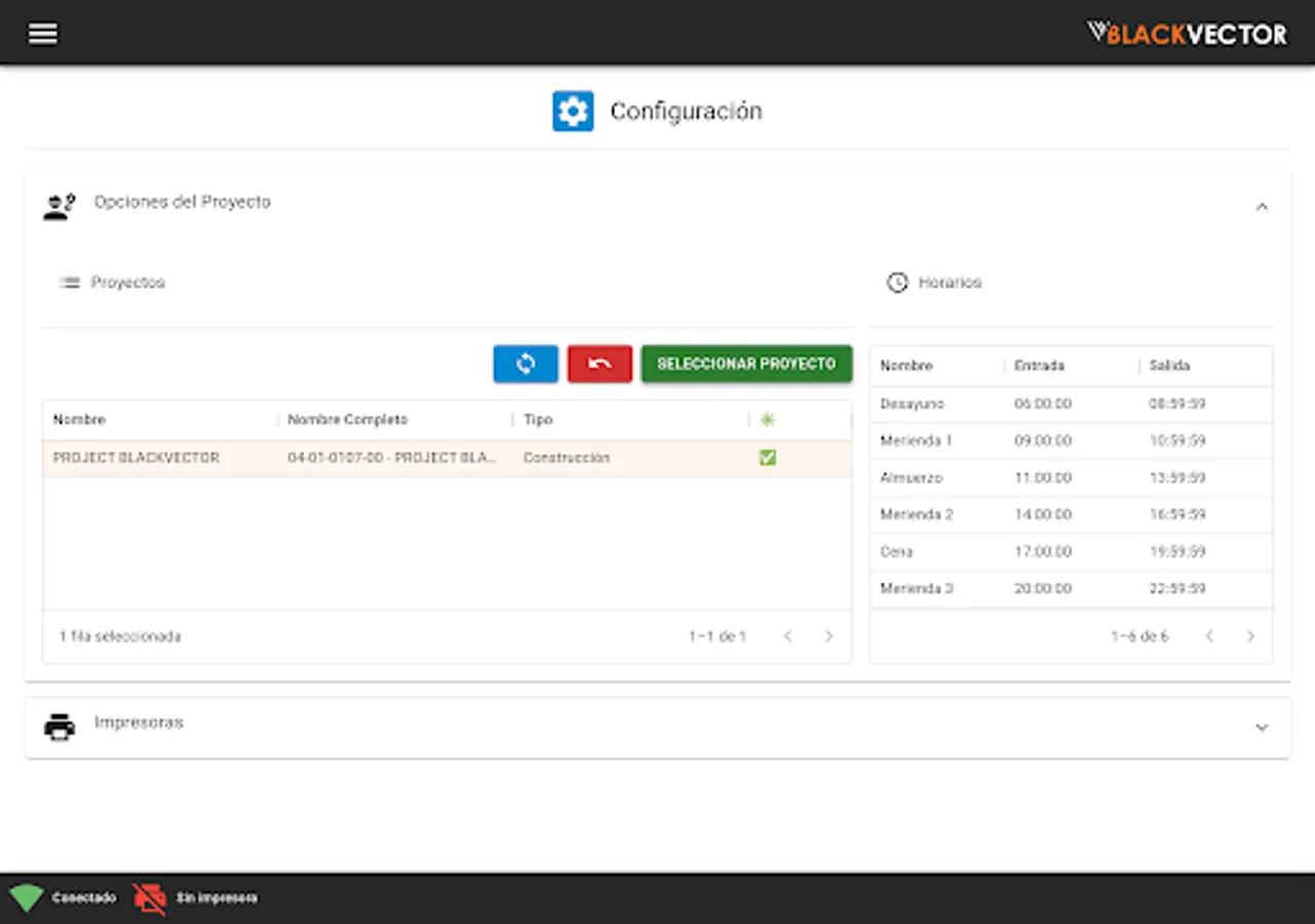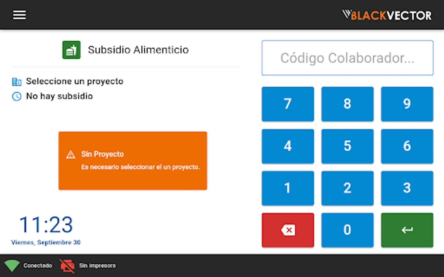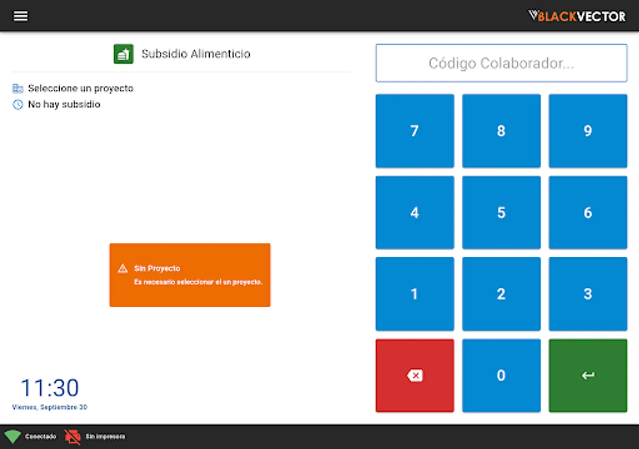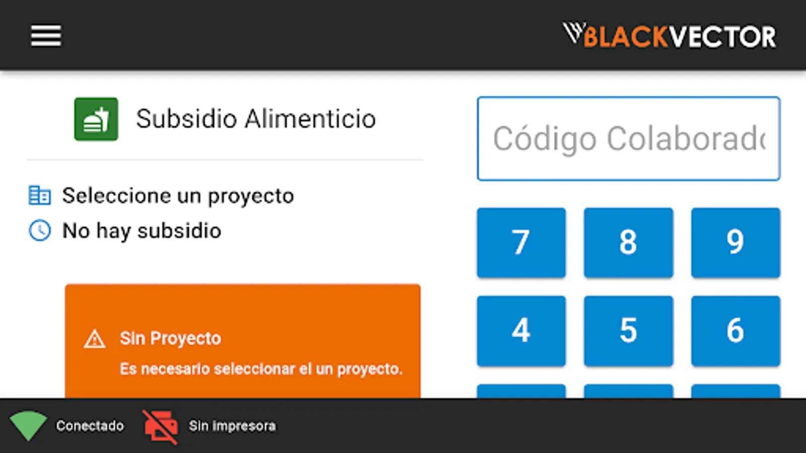Application developed by Black Vector for the control of the Food Subsidy in Construction projects for people, employees or collaborators who have a subsidy included to receive food.