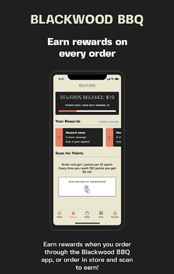 Earn 1 point for every $1 spent when you order Blackwood BBQ for delivery or pick-up on the app! Easy online ordering like one-button reordering of your favorites, see the latest items on the menu and find your nearest Blackwood BBQ."