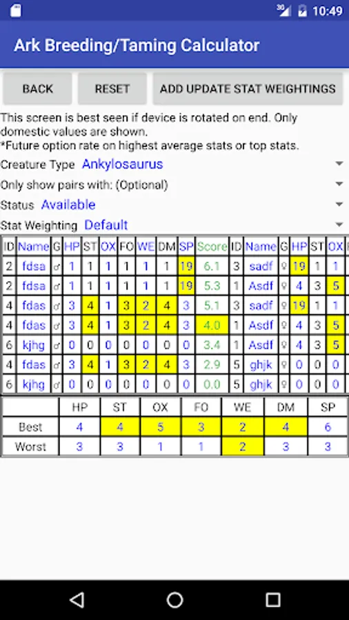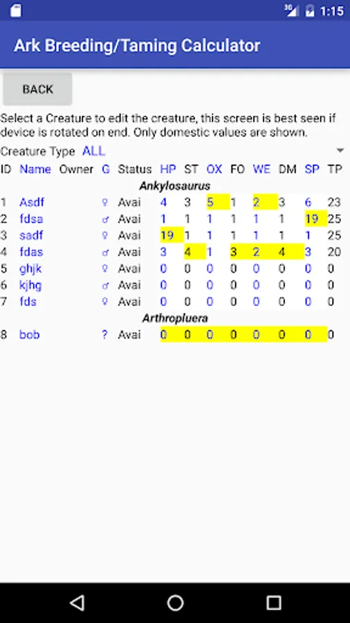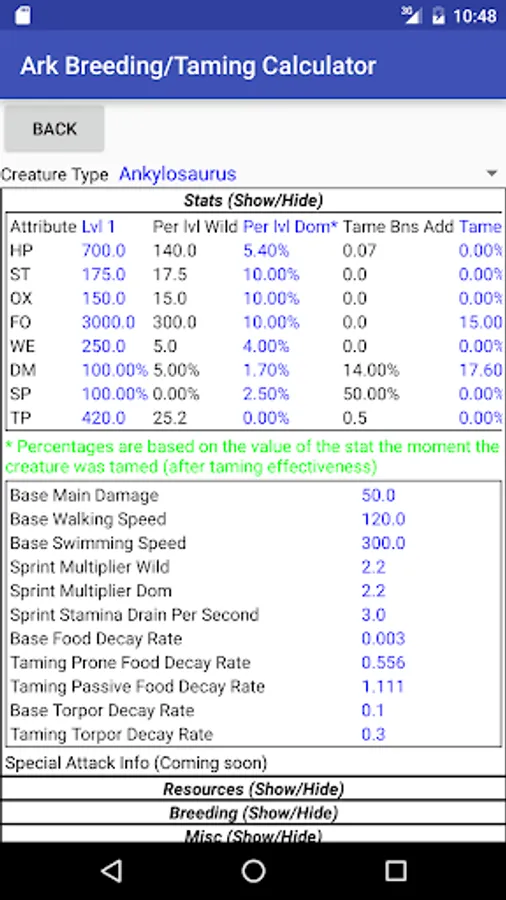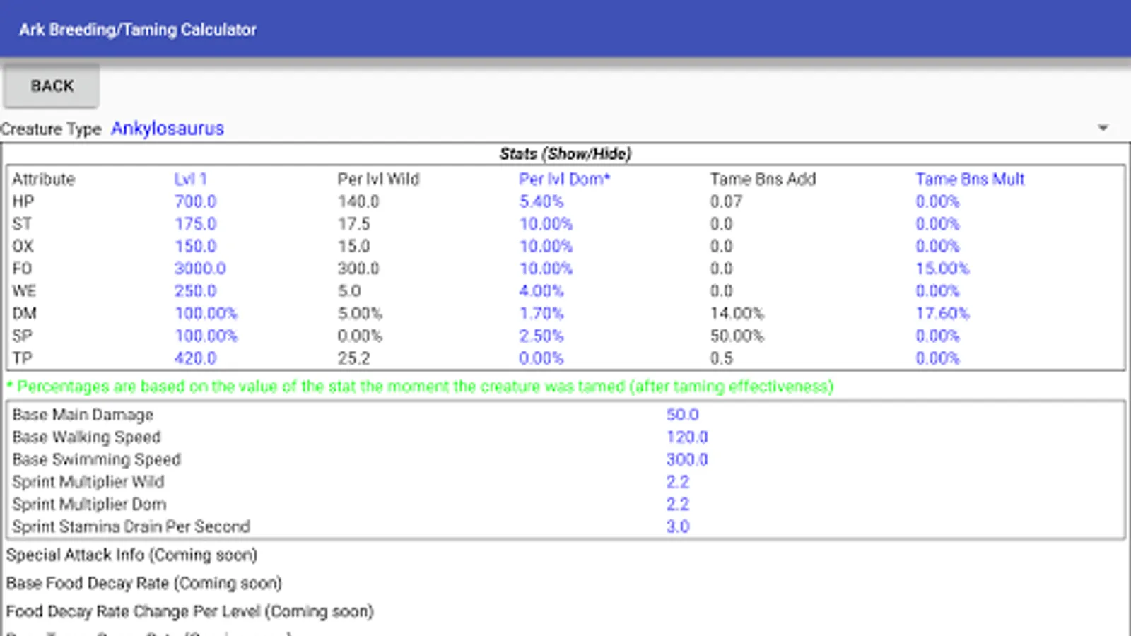 Ark Survival Evolved creature stat extractor/tester, breeding, family tree, taming calculator.