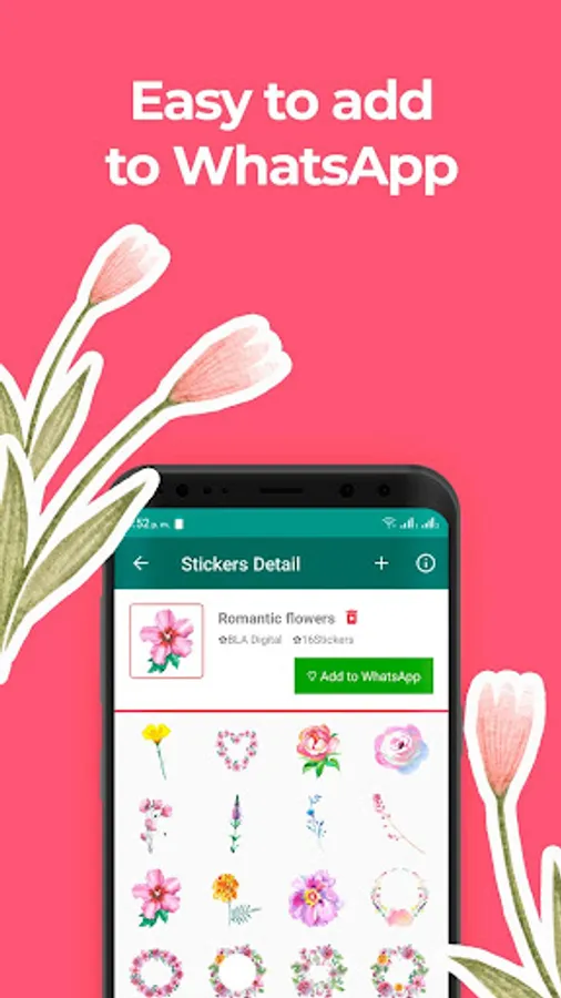 Our application has a wide variety of free stickers, get your favorite flowers and share with all your friends! Download now our application of flower stickers for whatsapp.