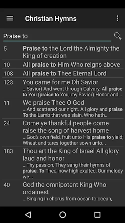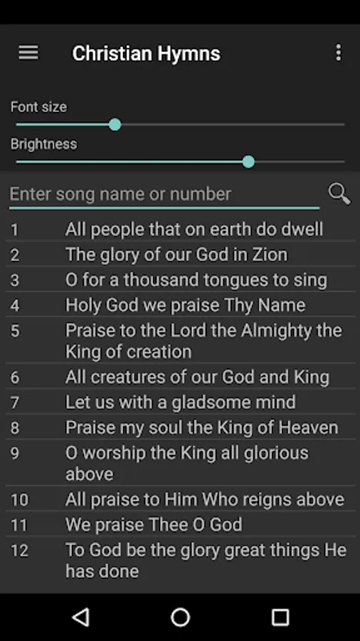 Christian Hymns contains English lyrics for 427 christian hymns. The app is simple to use, free distribution, and does not contain ads.