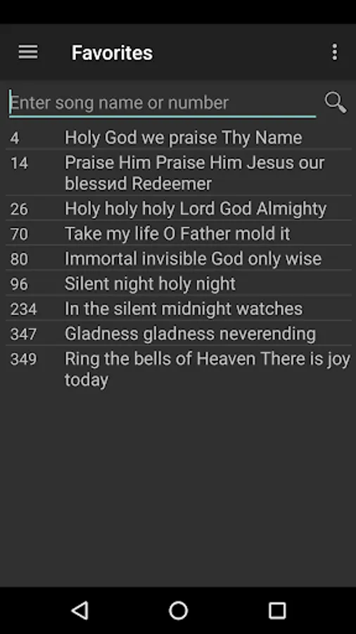 - Instant search by title, song text, and numbers