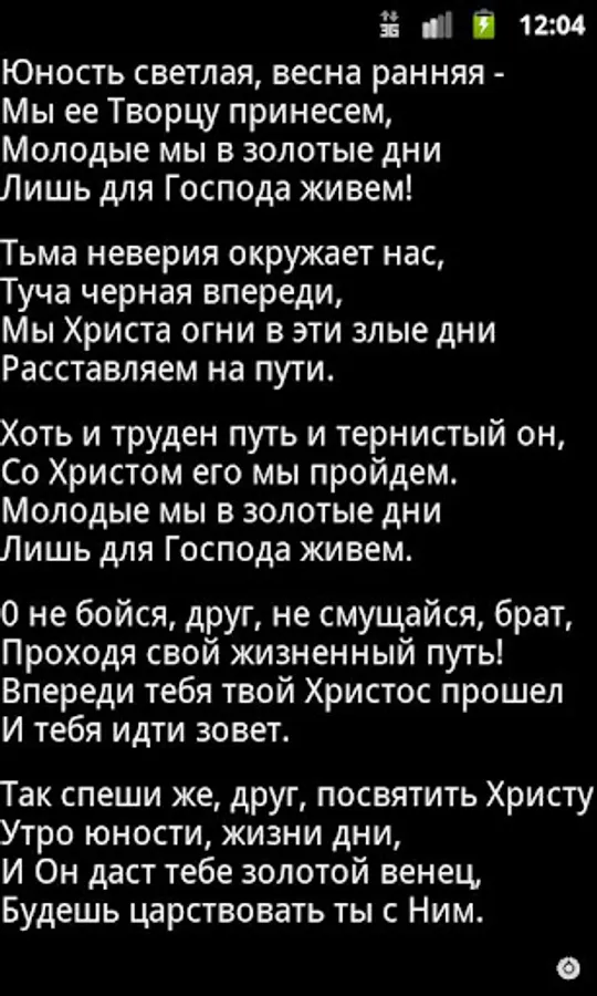"Songs of Praise" has frequently used Russian and English songs. You can contact us if you have suggestions. We are working on new version of this app. Thank you, God bless.