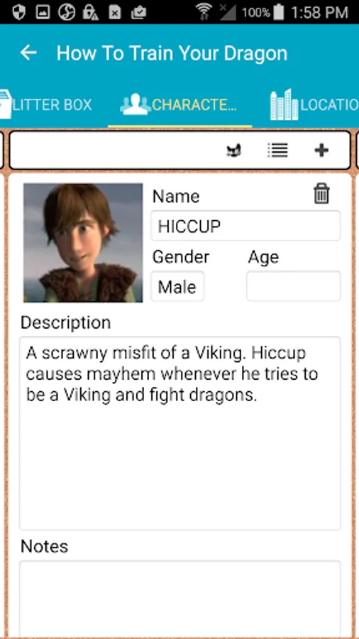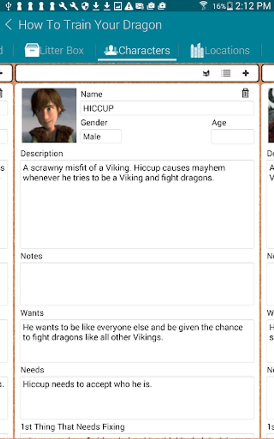 Add the Characters in your story, including their Wants, Needs and the Six Things that Need Fixing and link them to the scenes in which they appear