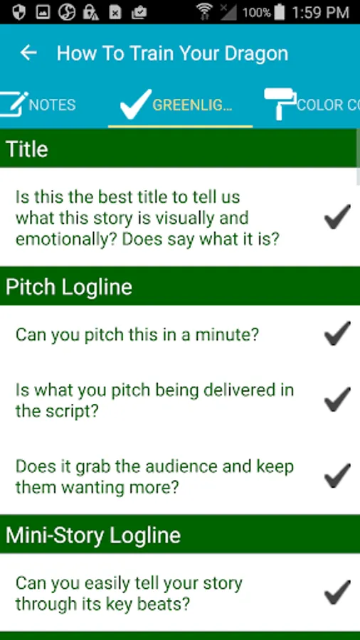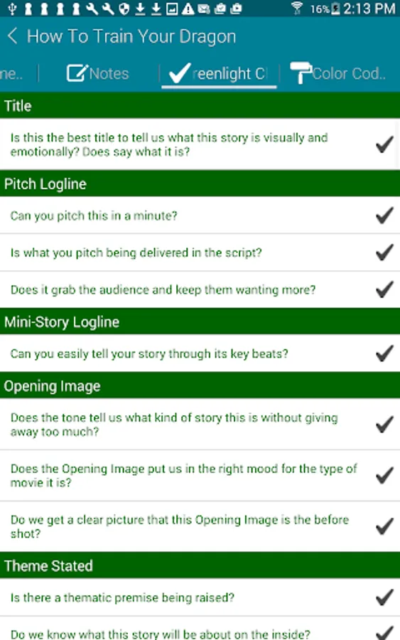 Ensure that you have covered all the elements of a great screenplay with the Greenlight Checklist