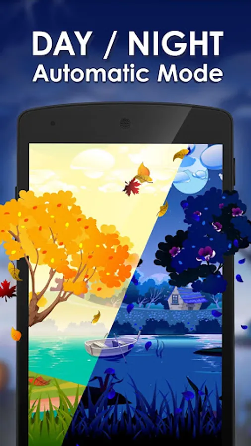 Sunny and flowery summer is replaced by cool voluptuous fall with it's yellow and light red colors. Trees are covered with gold, it's raining a little bit and peaceful autumn foliage leaves are falling down... Gorgeous leaf fall is activated by just one screen touch!