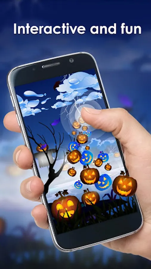 Enjoy your holiday filled with the variety of mysteries and horror themed atmosphere! You can play with the decorated glowing pumpkins if you wish and see how beautifully they look in the dark. This edition doesn't have day mode so that you can adore late night glow for the whole 24 hours. Scroll through the interactive pumpkins, haunted house at the forest in the background, covered with falling foliage leaves, fog and rain... This all sets the atmosphere and spirit of Halloween!