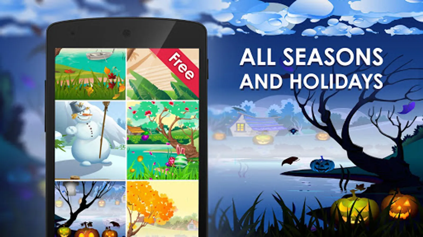 Download now amazing Seasons Live Wallpaper Free app and enjoy 7 beautiful HD holidays and seasons! Play and take care of a cute virtual pet that lives inside your interactive wallpaper. Make your phone screen unique!