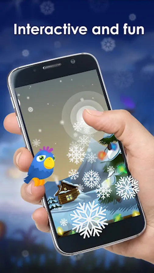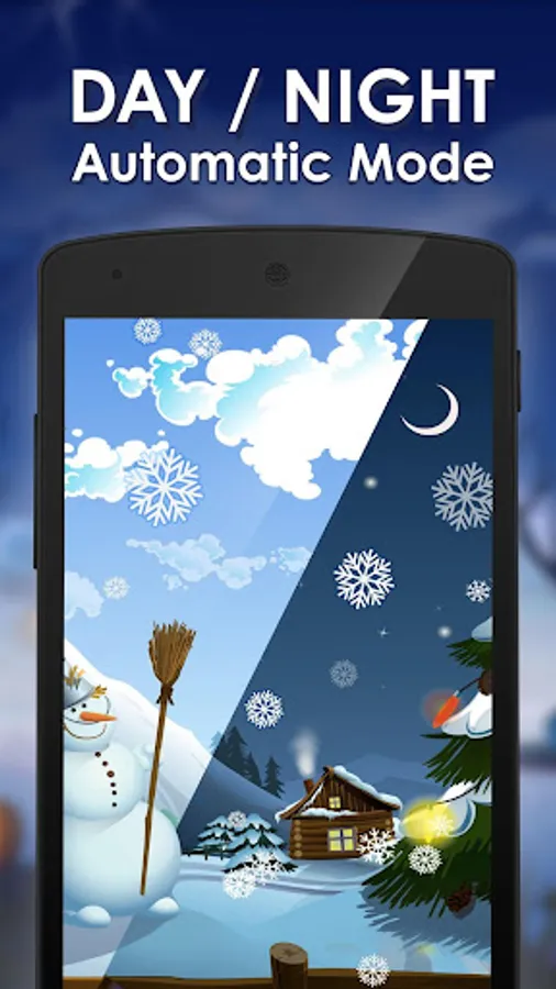 Serene winter themed live wallpaper. Imagine snowy late December night, cozy house in the forest with fireplace, traces of sleds, merry snowman and gifts under the tree, stunning mountains far away covered with translucent snow, dancing fluffy snowflakes – all this will immerse a winter spirit into you. Download this free winter live wallpaper and enjoy frosty beautiful winter backdrop!