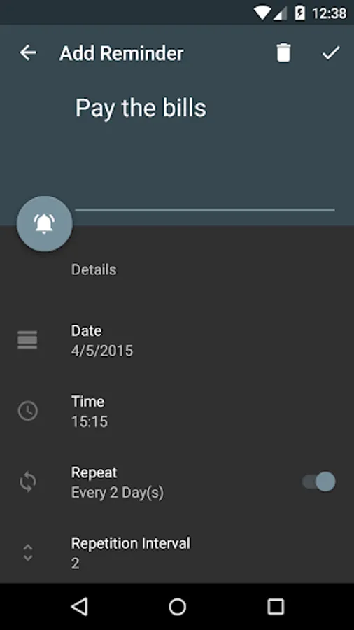 - Repeating reminders. Set intervals in minutes, hours, days, weeks and months