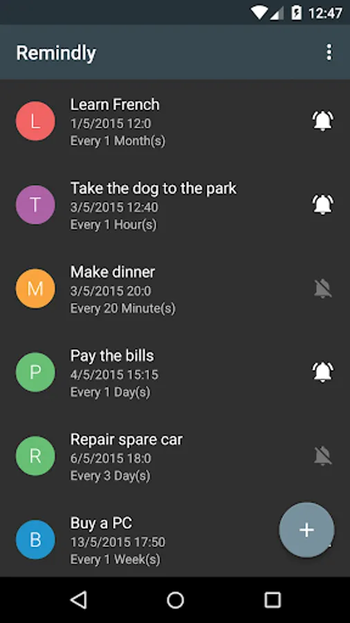 - Repeating reminders. Set intervals in minutes, hours, days, weeks and months