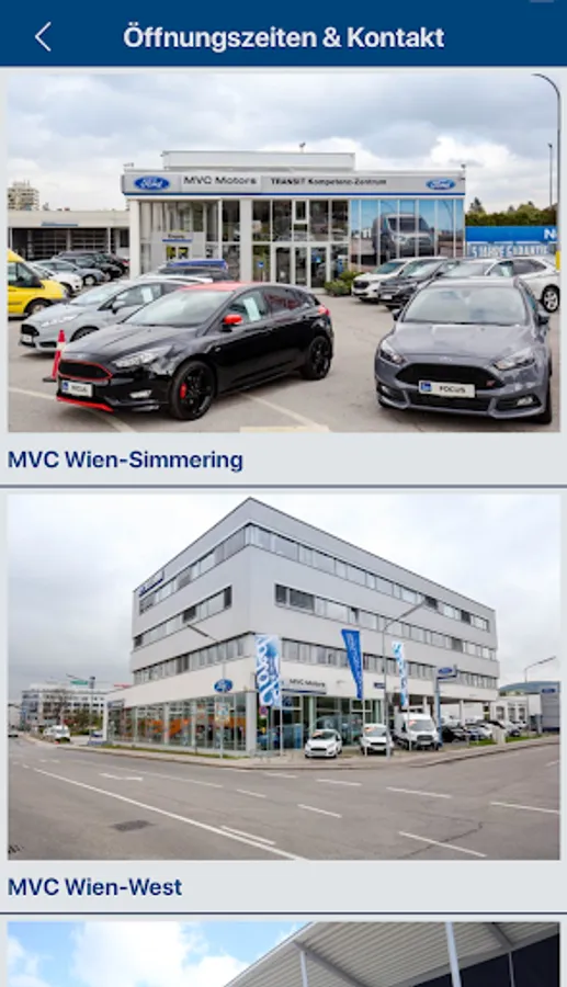 The Ford brand is sold at all MVC locations. In addition, Peugeot, Nissan, Alfa Romeo, Fiat, Fiat Professional, Abarth, Jeep and Volvo are serviced at the MVC Vienna-North location, the Alfa Romeo, Fiat, Fiat Professional, Abarth, Jeep and Peugeot brands at the MVC Brunn location, as well as at the location MVC Wien-Simmering also offered the Peugeot and Nissan brands.