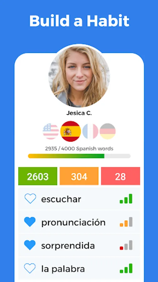 π- Learn international languages: Unlike most vocabulary and language learner apps that focus on easy English learning only, Blarma is a different language learning app. You can do the same process as for the English language to boost vocabulary, improve word knowledge, and: