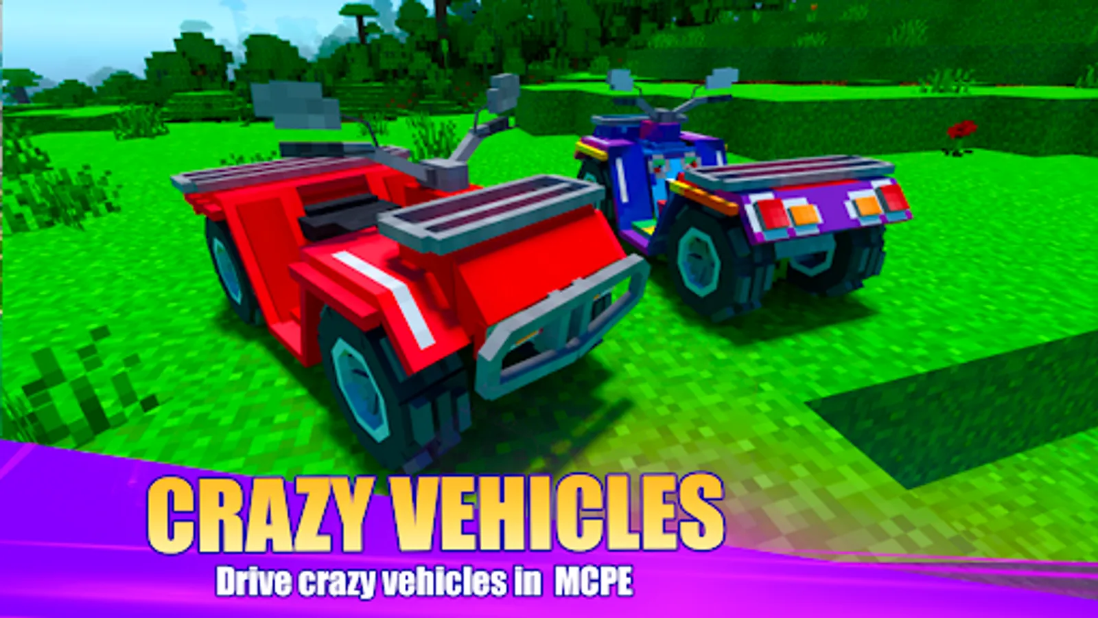 Vehicle Car Mods for Minecraft is designed to enhance Minecraft gameplay experience by introducing transport mods into your world. It might be car mods, war tank addons, bikes, motorbikes, planes, boats, ships,... that can be easily installed within Minecraft Car Mod.