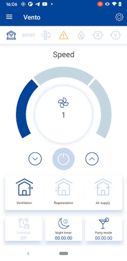 The app lets you check all the current ventilator parameters, set the speed or operation mode (Ventilation/Heat Recovery/Air Supply), adjust sensor parameters, set the timers or customise the weekly schedule. Just rely on the smart logic to take care of the routine operations – day after day.