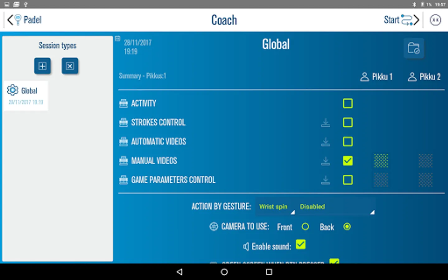 Application that makes easy to create, through Artificial Intelligence algorithms and pikku devices, an smart system that allows to generate key videos of your matches and training sessions, remotely control sport scores, record and display statistics and store your strokes and movements. The application offers use cases for players, referees, spectators, coaches and organizers of competitions. Currently offers specific functionality for Padel, Tennis, Basketball, Squash, Badminton and Table Tennis. It can also be used in a generic way to remotely create smart videos in any sport if you need to monitor the technique and the game performance