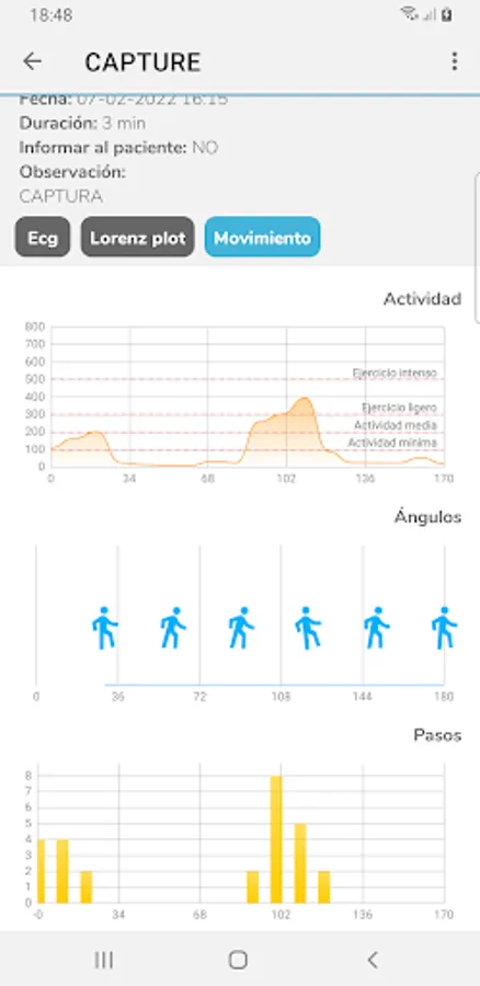 Data collection and monitoring of ECG and movement sensors. The data is uploaded and stored anonymously on a server for further analysis and study by specialists.