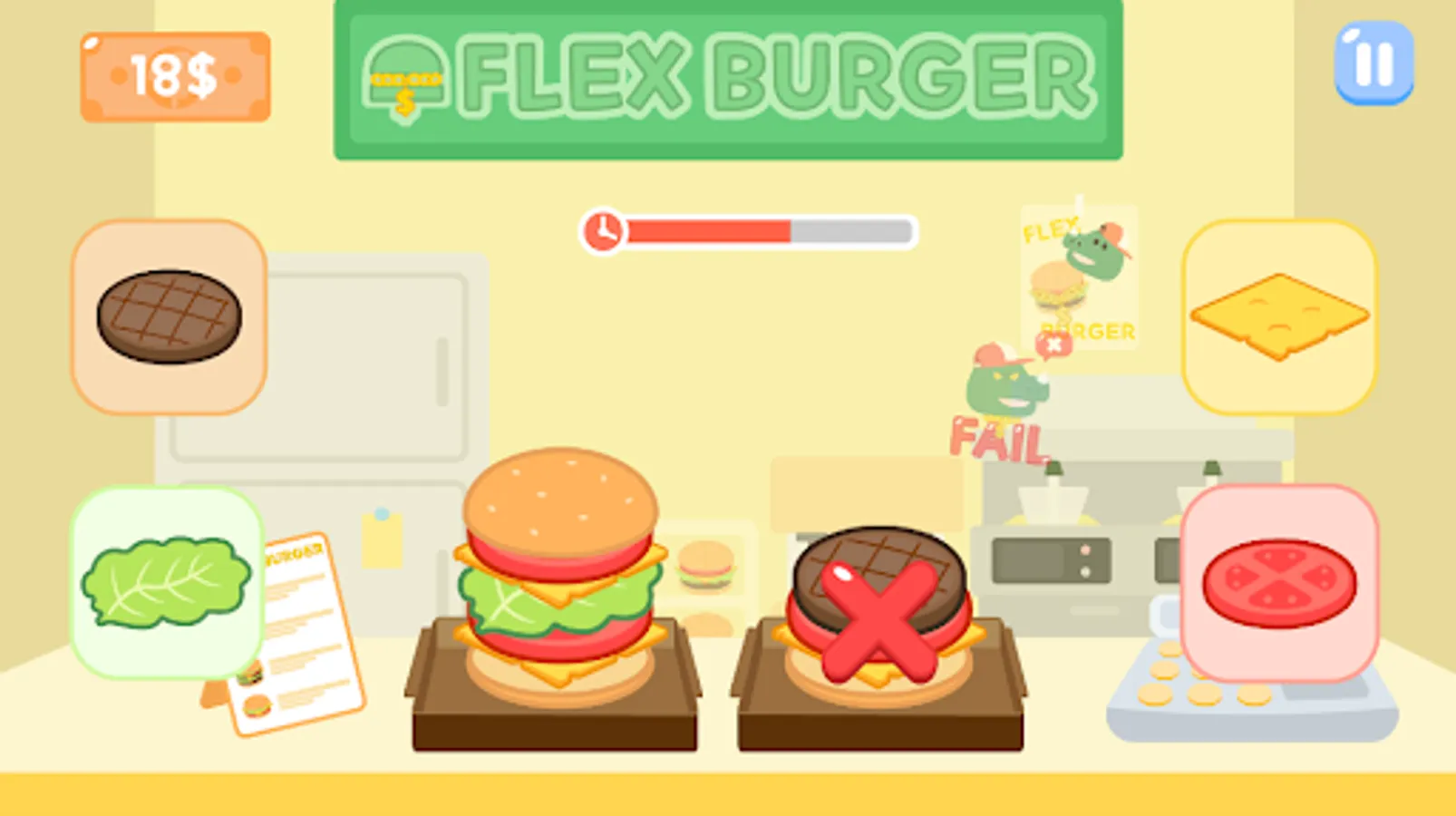 💛 Time increases if you guess the hamburger, and it is deducted if you get it wrong!