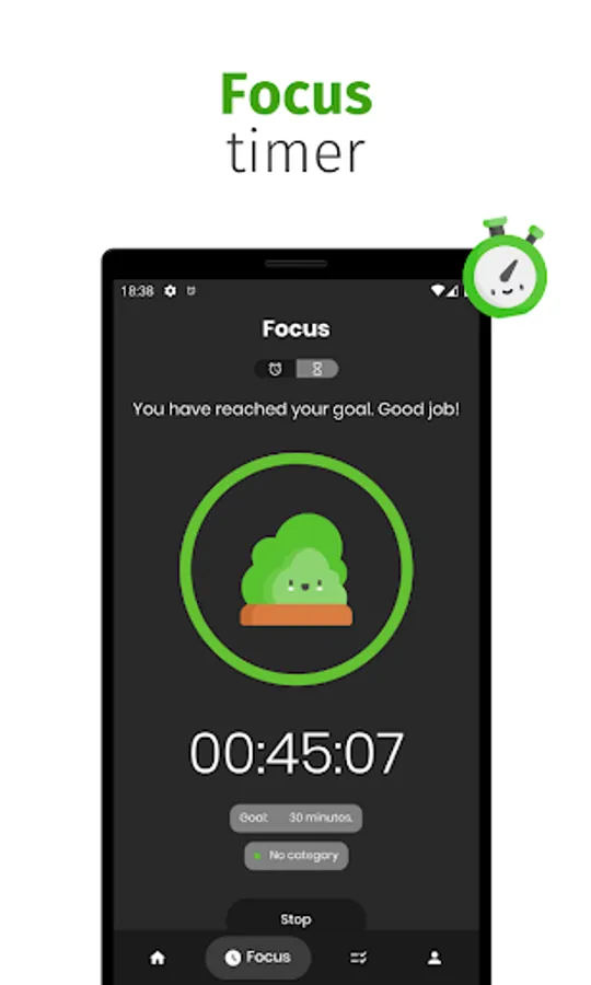 You can't stop procrastinating and checking social media? Start a timer to prevent this from happening. A tree will grow during the time of your focus. But beware, if you leave the app, the state of the tree and timer will reset. You will loose all your focus time.