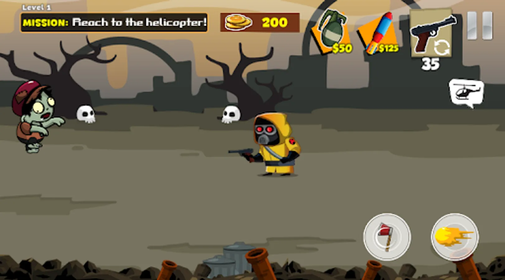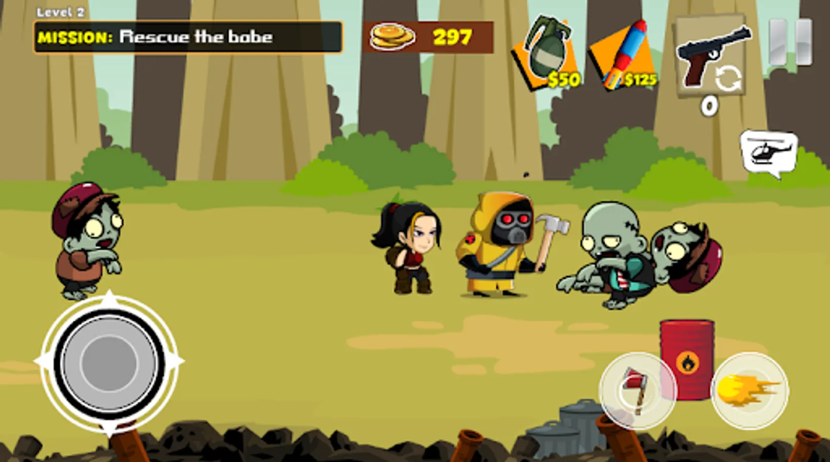 The world has broken out with a Zombie virus, no surprise there. Play as Jason and step up to save his beautiful babe by slaying zombies, Use your full arsenal of guns, grenades and nukes to get to the chopper and save your babe.