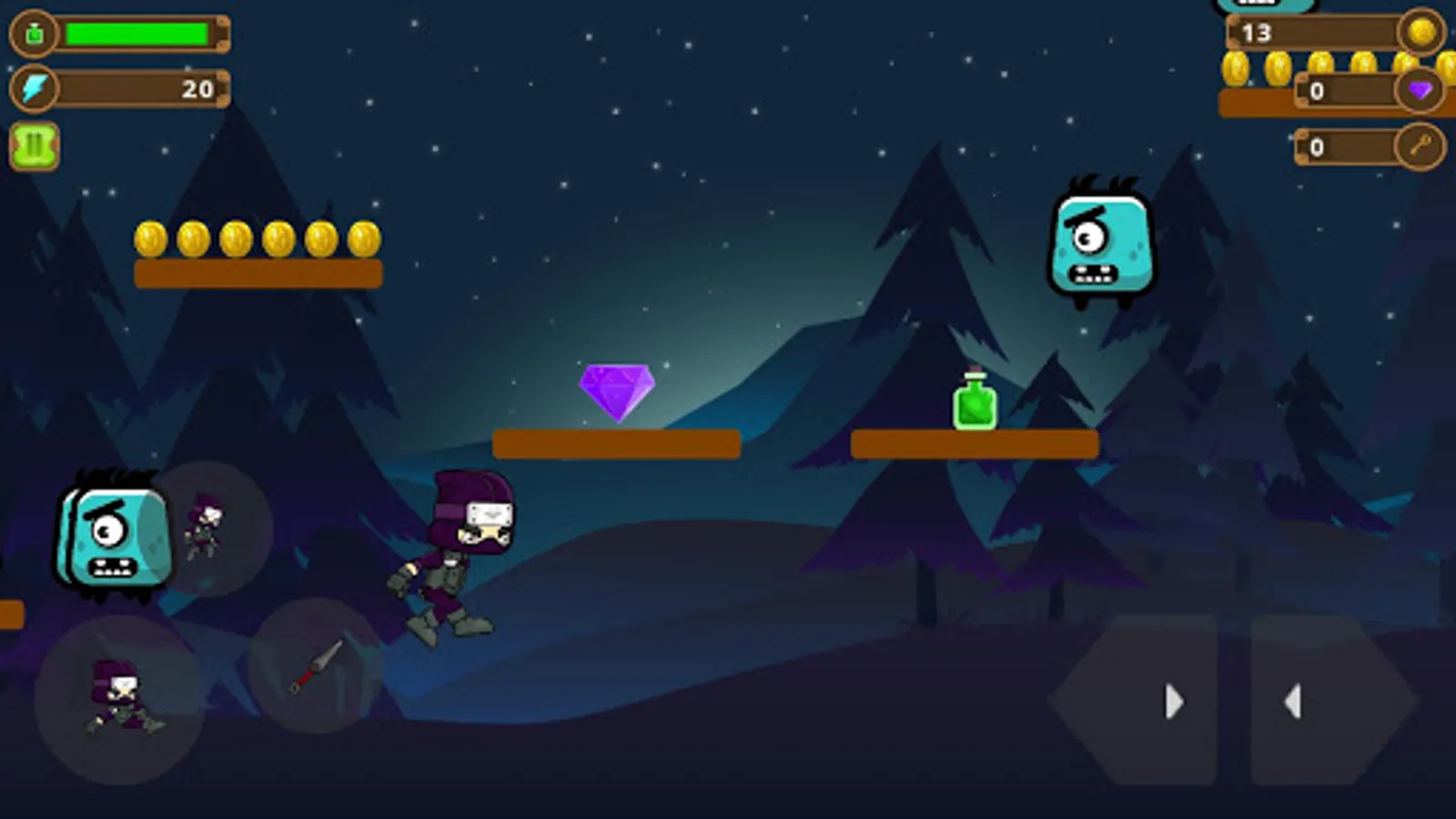 Moonstone ninja is a ninja running game, where you as a ninja need to collect all the six moonstones bypassing all the hurdles on the way and killing different monsters. You need to collect diamonds, keys and coins to purchase and upgrade the weapons