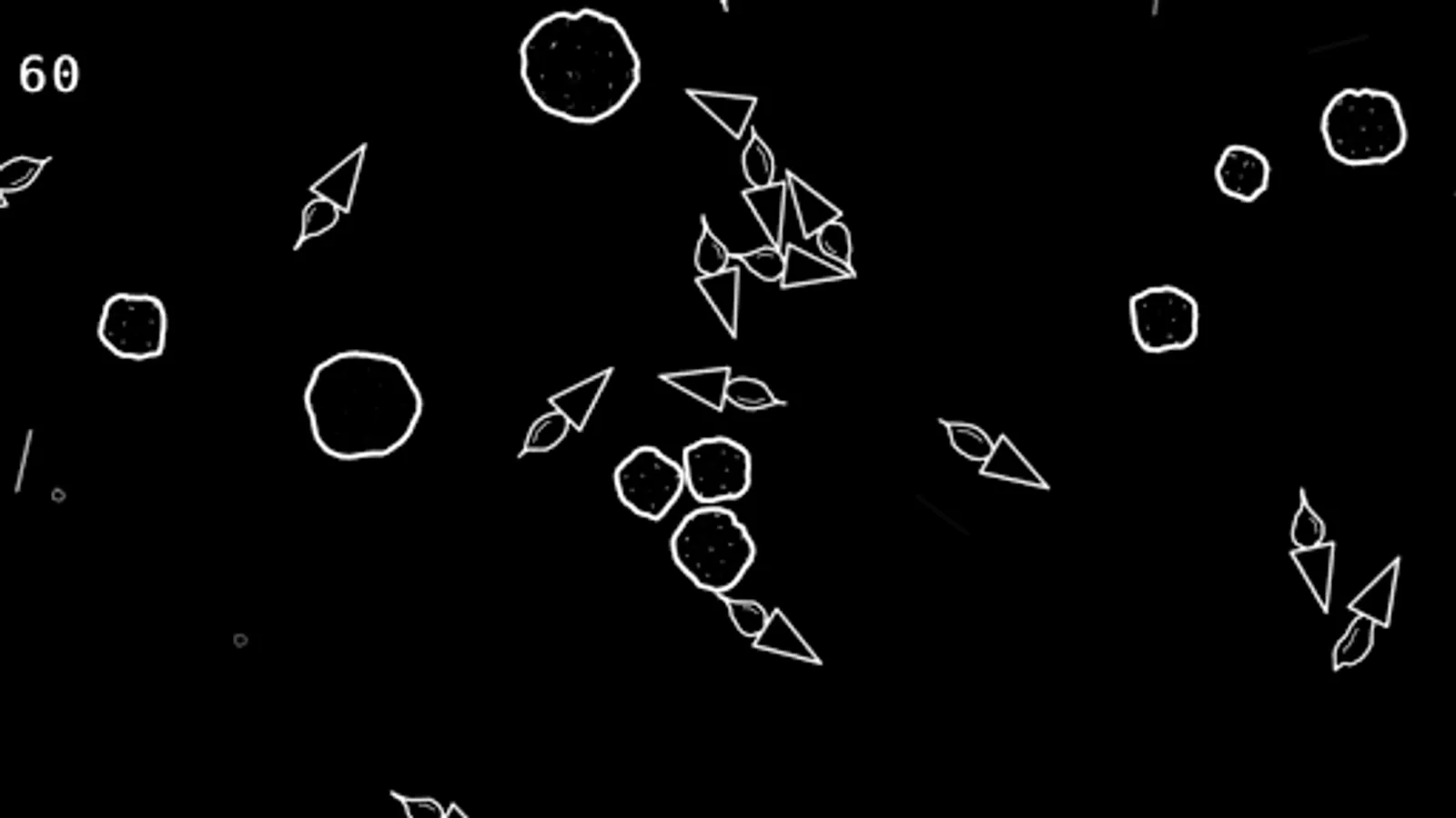 After the Asteroid war of extermination in 1979, the Spaceship empire spread like a virus throughout the universe, reproducing exponentially, annihilating any and all asteroids. To survive, individual asteroids have been forced to cannibalize their own kind in order to prolong their existence. You are The Asteroid, survive and bring devastation to the Spaceship empire.
