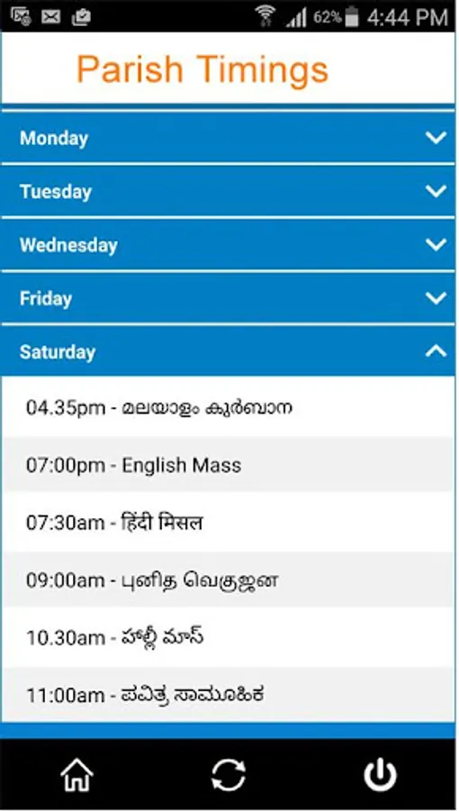 Parish Timings: This is available to Parish Priest and Members. Mass timings and other liturgical events of all week days. The intent is to make this information available to members instantly, including that may have changed after the previous Sunday announcements