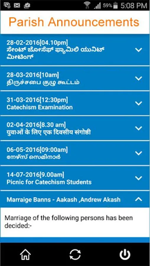 Member Birthdays, Wedding Anniversary & Priest Birthday, Feast: Members can view Birthday, Wedding Anniversary list. They also get list of Priests and Bishops celebrating Feast or Birthday on that day. You can Call, SMS, Email or Call directly from the App. This module is available to Priests and Bishops as well.