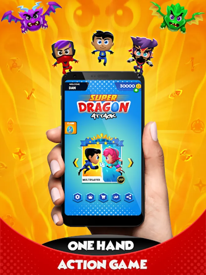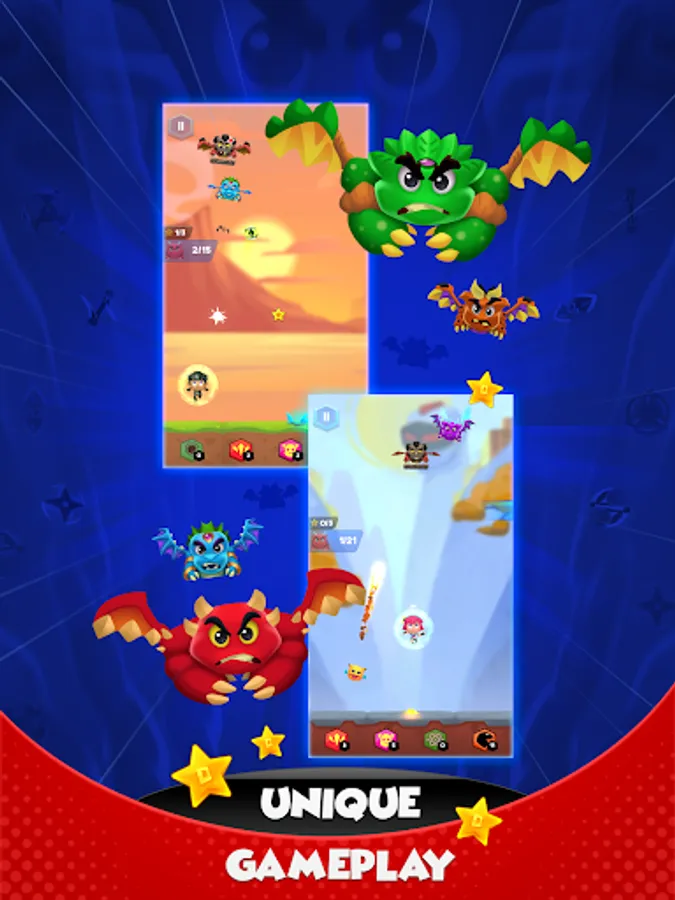 - Two Players (play with friends on the same device and score maximum by defeating small dragons to win)