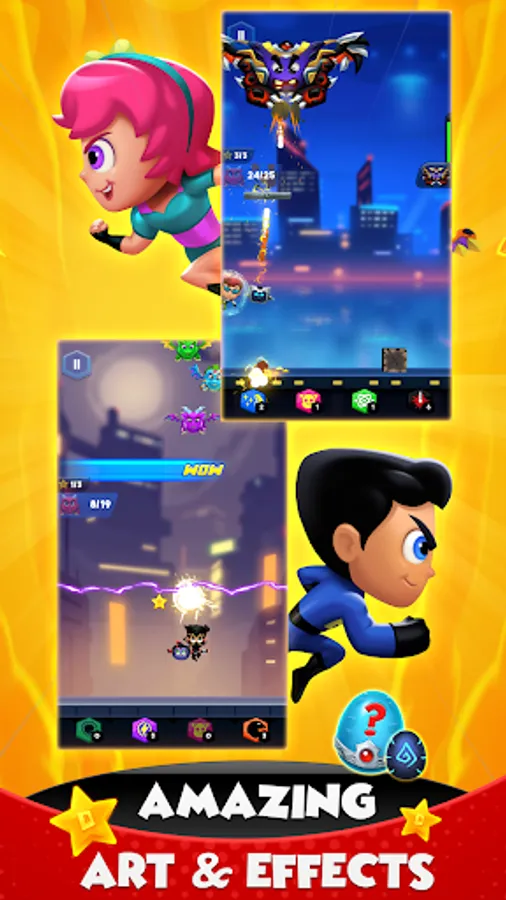 Play as 8 unique superheroes having different weapons and a cute assist and save our cities from furious small dragon attacks and boss dragon attacks.