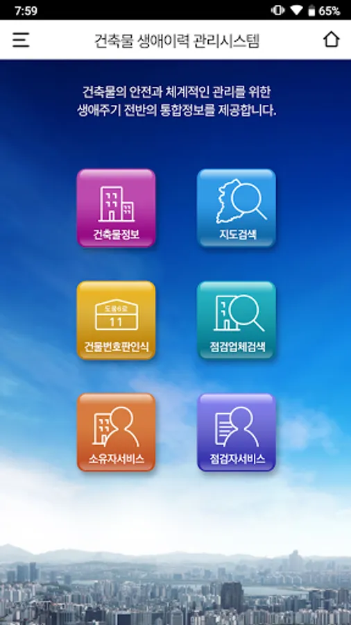 It is a mobile version of the building life history management system (https://blcm.go.kr) that allows citizens to easily and conveniently check building information.
