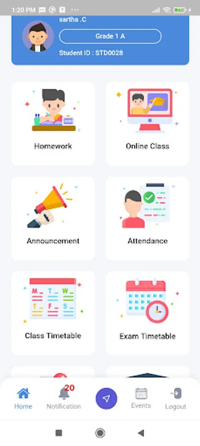 Track school activities namely, Homework, Online Class, Overall Performance of class and students.