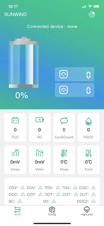 The app is specially adapted to Sunwind Gylling A / S 'batteries. It allows the user to view battery status (SOC), Voltage (V), Temperature (T Min - Max) and current in and out of the battery in real time (A). The app also provides readings to the user in the event of a fault in the battery with letter abbreviations. The app's interface allows support to configure BMS in the battery using code (only for authorized personnel). The app is intended as a useful tool and not for continuous use or as a replacement for traditional lithium battery monitors.