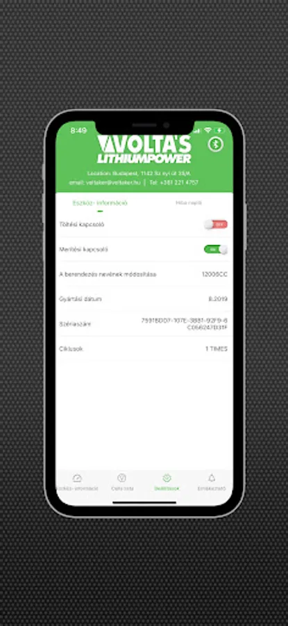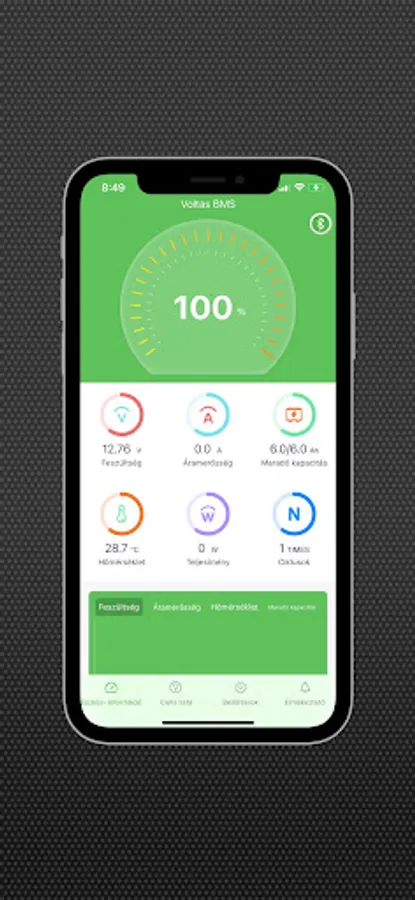 1 valós idejű feszültség, áram, teljesítmény, belső ellenállás és egyéb paraméterértékek megjelenítése műszerfal és digitális kijelző form ájában;