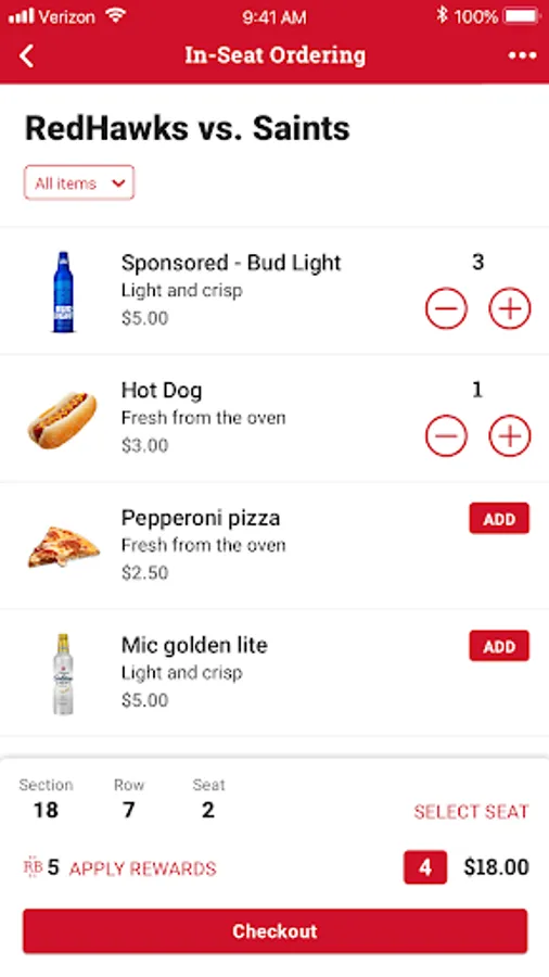 Earn points as you participate in each game and make your way up the leaderboard to become the number one RedHawks' Superfan! Then use those points like cash as you order food and beverages directly to your seat with our super convenient, In-Seat-Delivery platform!
