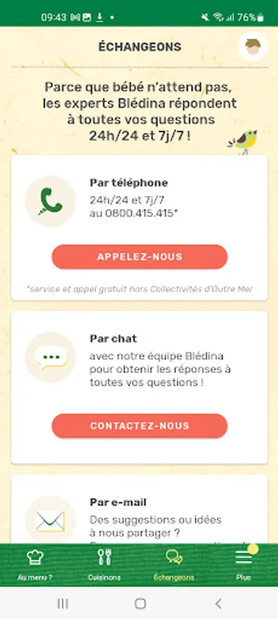 Because baby food is serious business, our experts support you in the great adventure of food diversification. BlédiPOP allows you to contact Blédina experts as soon as you need them, and that's important to support you on a daily basis! And yes, baby does not wait!