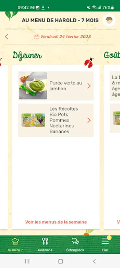 - Menus for babies from 6 months