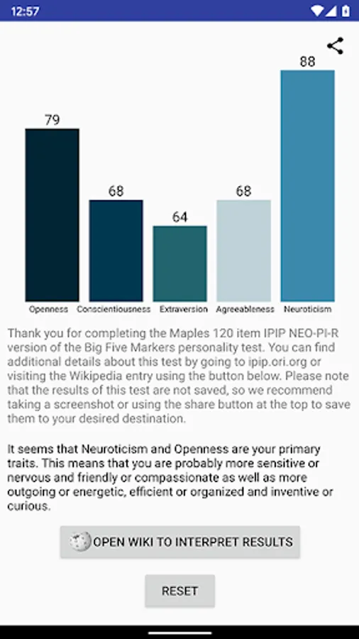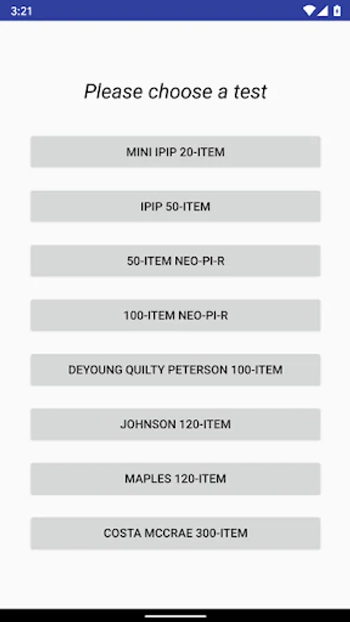 This app will help you to take free personality test which gives you accurate scores for the Big Five personality traits. See exactly how you score for Openness, Conscientiousness, Extraversion, Agreeableness, and Neuroticism with this scientific personality assessment.