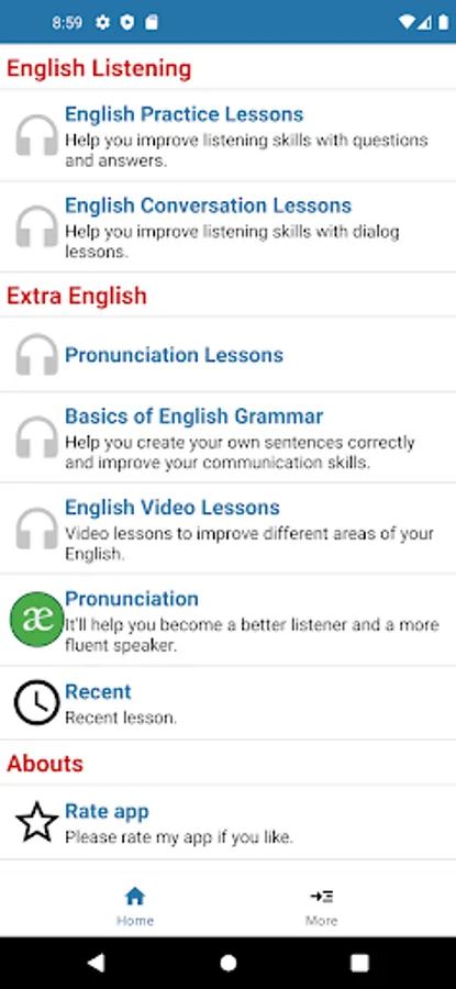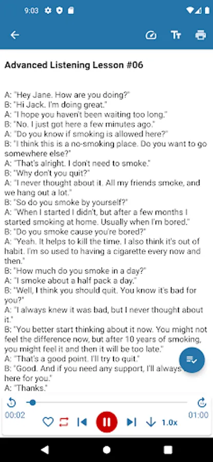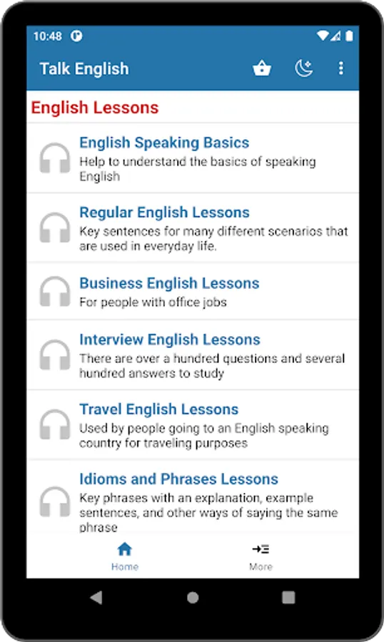 Talk English: Listening & Speaking is a free application for listening to speak English. Talk English: Listening & Speaking very useful in practicing daily conversations. Talk English: Listening & Speaking includes the list of most common words and phrases used in daily conversations. It will help you speak English.