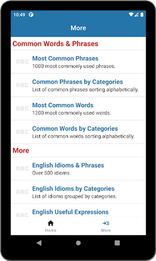 * Idioms and Phrases section, you will find key phrases with an explanation, example sentences, and other ways of saying the same phrase.