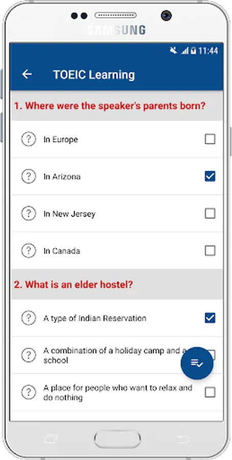 - Questions & Response: You will listen to a question then choose correct answer.