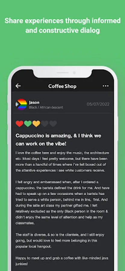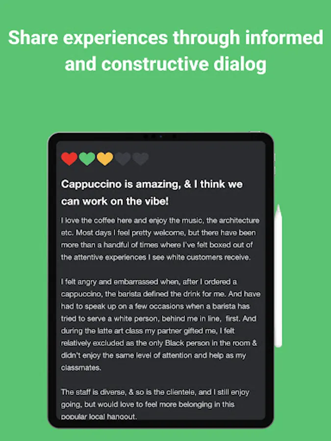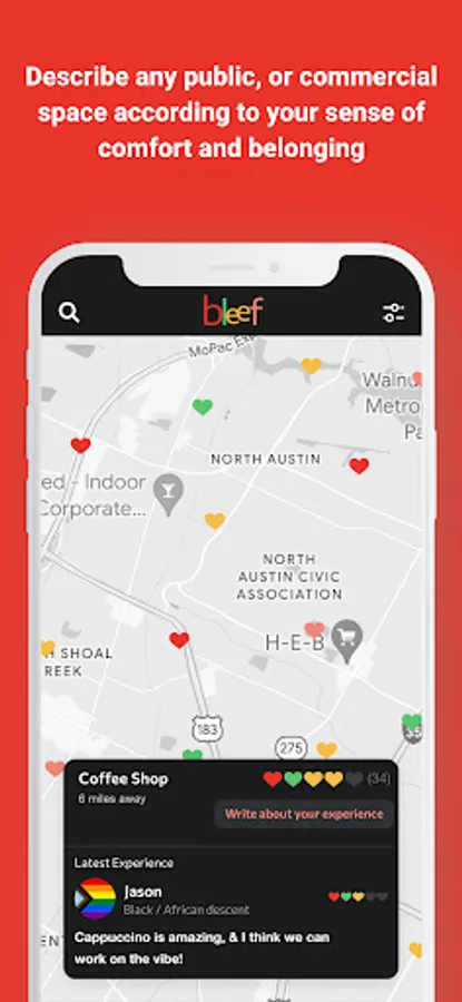 BLEEF, is a mobile app as-social-sculpture, designed to encourage the description and carving-out of crowd-sourced safe spaces for marginalized identities and their allies. At its most basic level, BLEEF allows users to post identity-based reviews of public and commercial spaces based on the sense of comfort and community experienced.