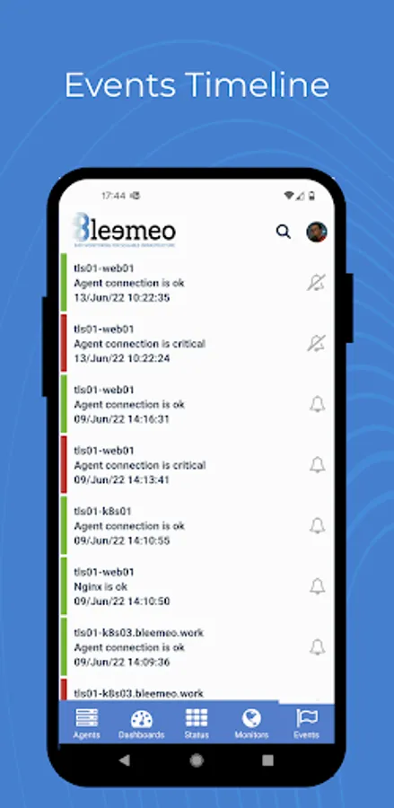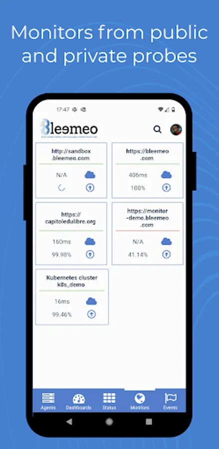 To use this application, a Bleemeo account is required. Free trials and Free Plans are available on https://bleemeo.com/trial