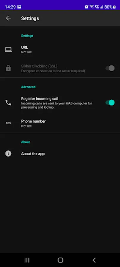 If you use RemoteMAB, both incoming and your telephone number are sent to Bleken Data AS 'server where your company is connected.