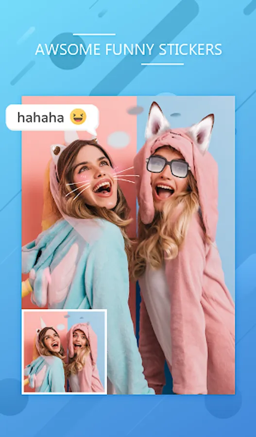Blend Photo Editor & Collage Maker, Photo Effects contains wide range of funny stickers and text with custom font. Just drag and drop the stickers over the creation and write some good thoughts over the pic to celebrate the life event. Customize the font by color, size and position.