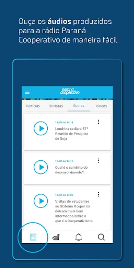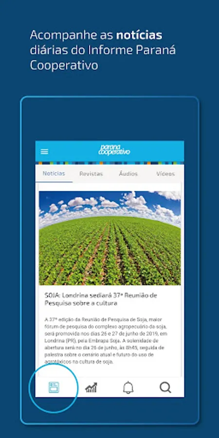 Through the Paraná Cooperativo (PR Coop News) application, you are inside the main facts about the sector. Sources and content of quality, with coverage of the main events, quickly in your cell phone - everything produced by the Social Communication team of the Ocepar System.