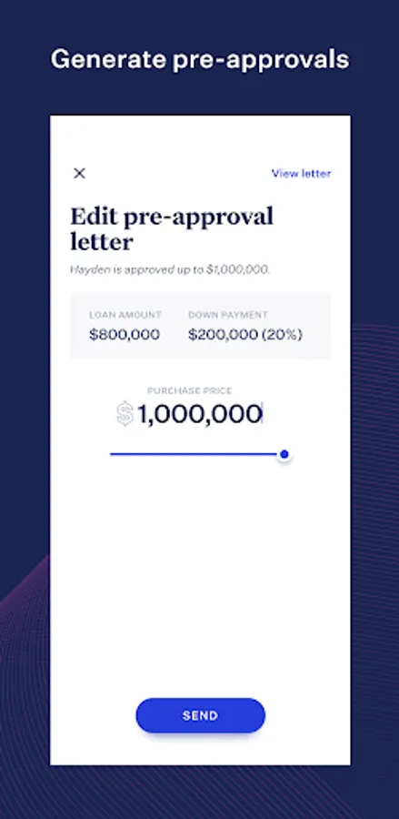 You can have immediate access to custom Pre-Approval or Pre-Qualification letters generated by the lender through the Blend Agent app. Your buyer’s loan officer sets a max pre-approval amount, then you can adjust downward to generate a new PDF whenever needed for different properties.