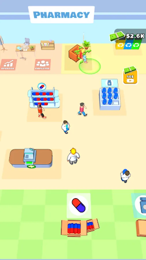 Manage your drug store. Grow your store, hire employees, add new departments and earn more money.