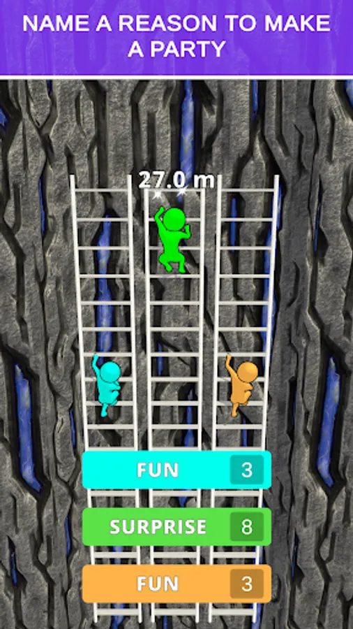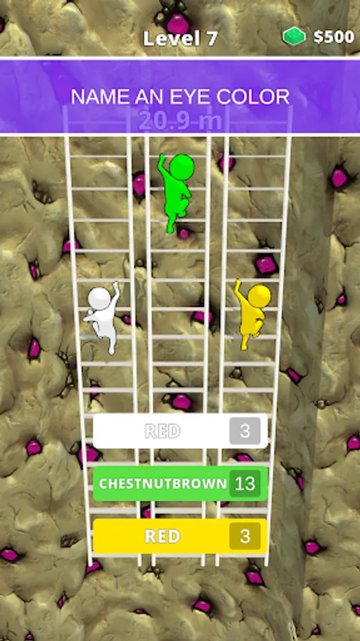 Race started. Answer the questions and climb the wall to win the race. Longer answers will raise you more. Reach the top otherwise water will rise and you will be eaten by sharks!