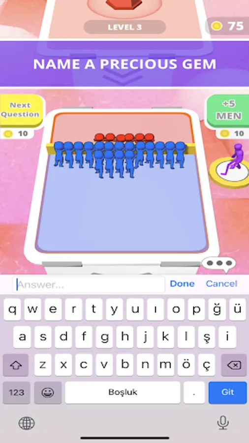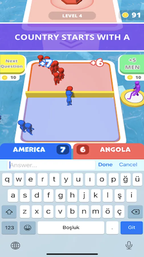 Guess the correct answers and type them quickly. Longer answers will give you more push power. Push strongly and push your opponent off the board!